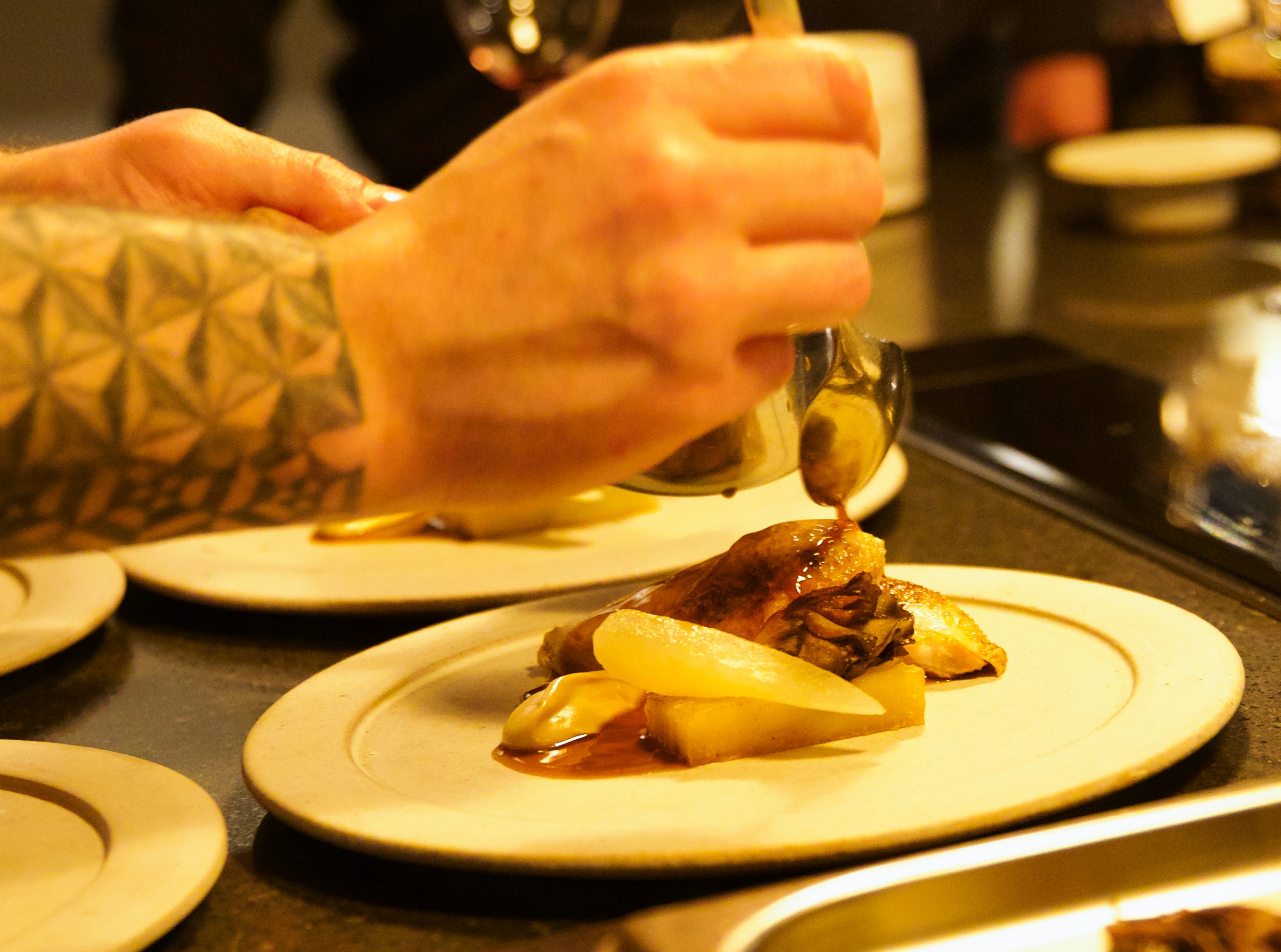 Depending on timings, numbers and preferences you can visit The Kirkstyle kitchen to watch the chefs prepare the meal.  Your meal will be finished off, plated and served in The Old Rectory, and our Sommelier will serve your wines.